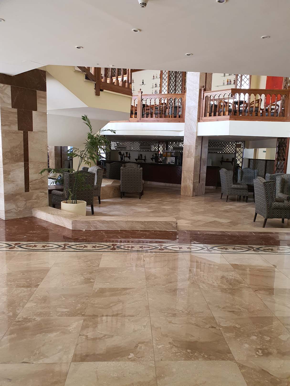 Teil von Lobby wo eine Bar ist aber erst ab 17 Uhr gibt's was zu trinken obwohl da ein Kellner den ganzen Tag steht bzw rum läuft. Es ist nicht möglich eine Wasserflasche von ihm zu bekommen.