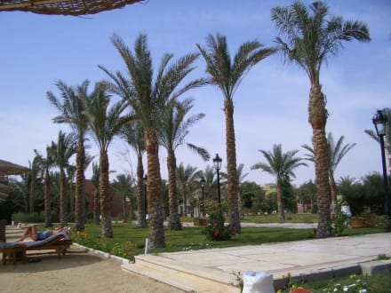 Ein Blick vom Strand zum Garten des Hotels.