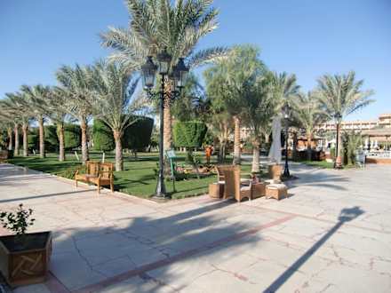 Schöne Palmen, gepflegter Rasen