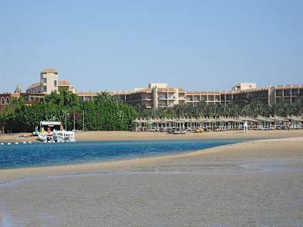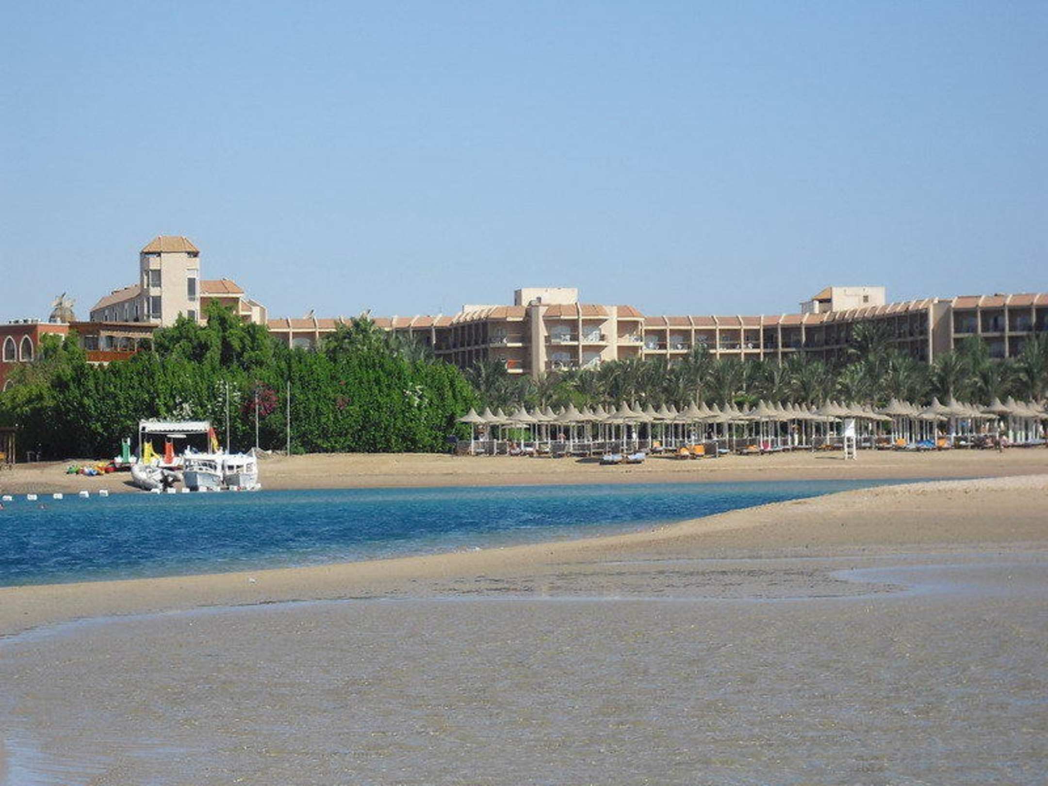 Blick von der Landzunge zum Hotel