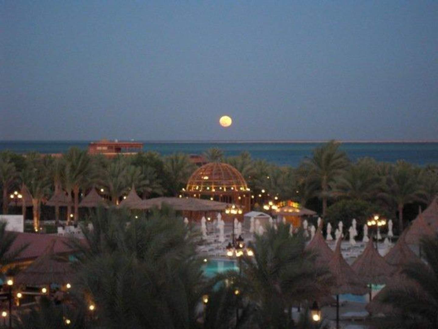 Ausblick von unserem Hotelzimmer bei Sonnenuntergang