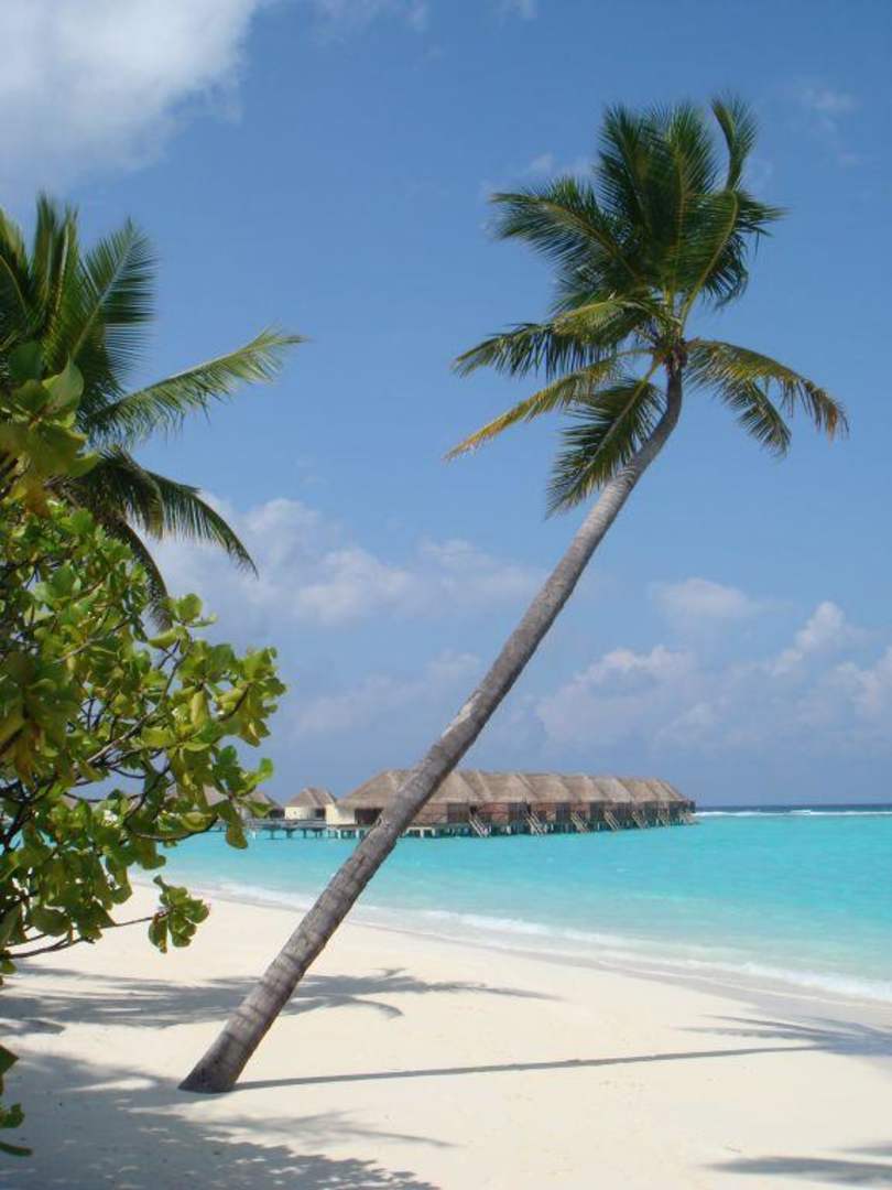 Strand mit Wasserbungalowblick