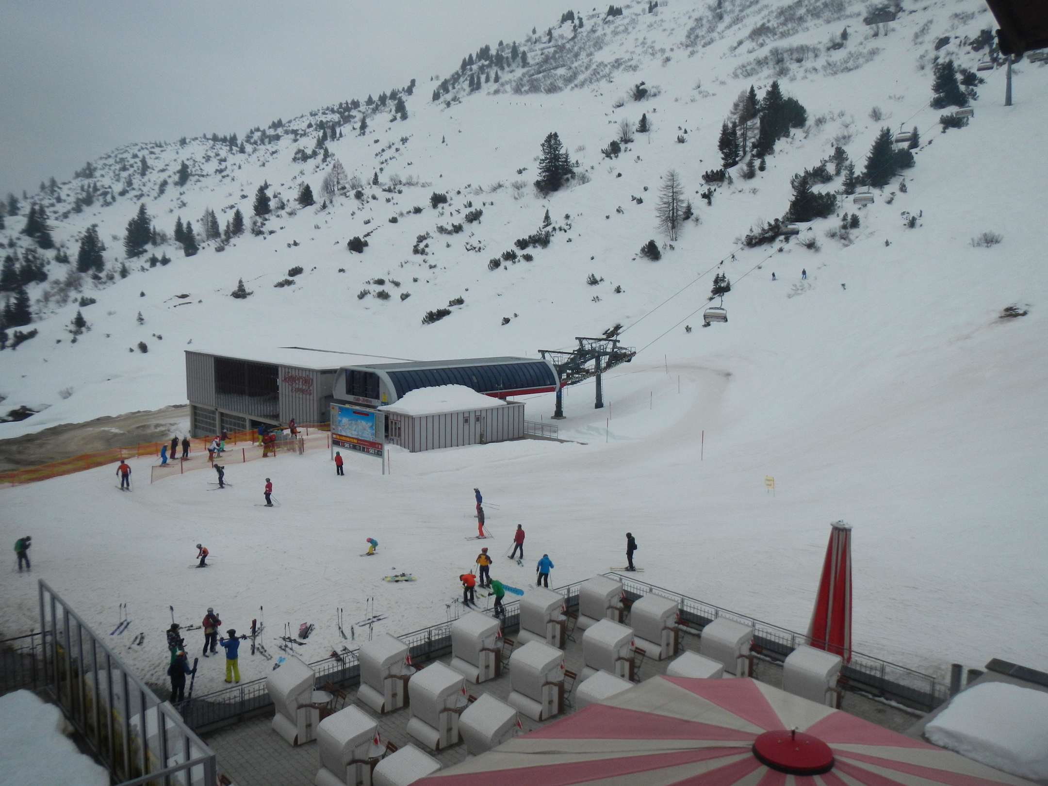 Blick auf Sessellift und Terrasse/Standkörbe