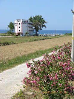 Komplette Hotelanlage vom Zufahrtsweg aus fotografiert