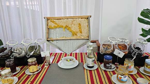 unsere Honigwabe beim Frühstück, habe ich vorher so auch noch nicht gesehen