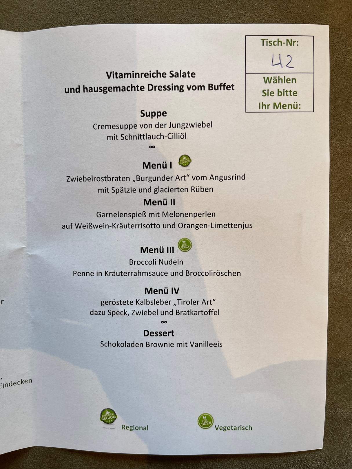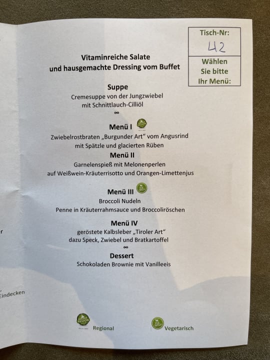 Menuauswahl im Sommer
