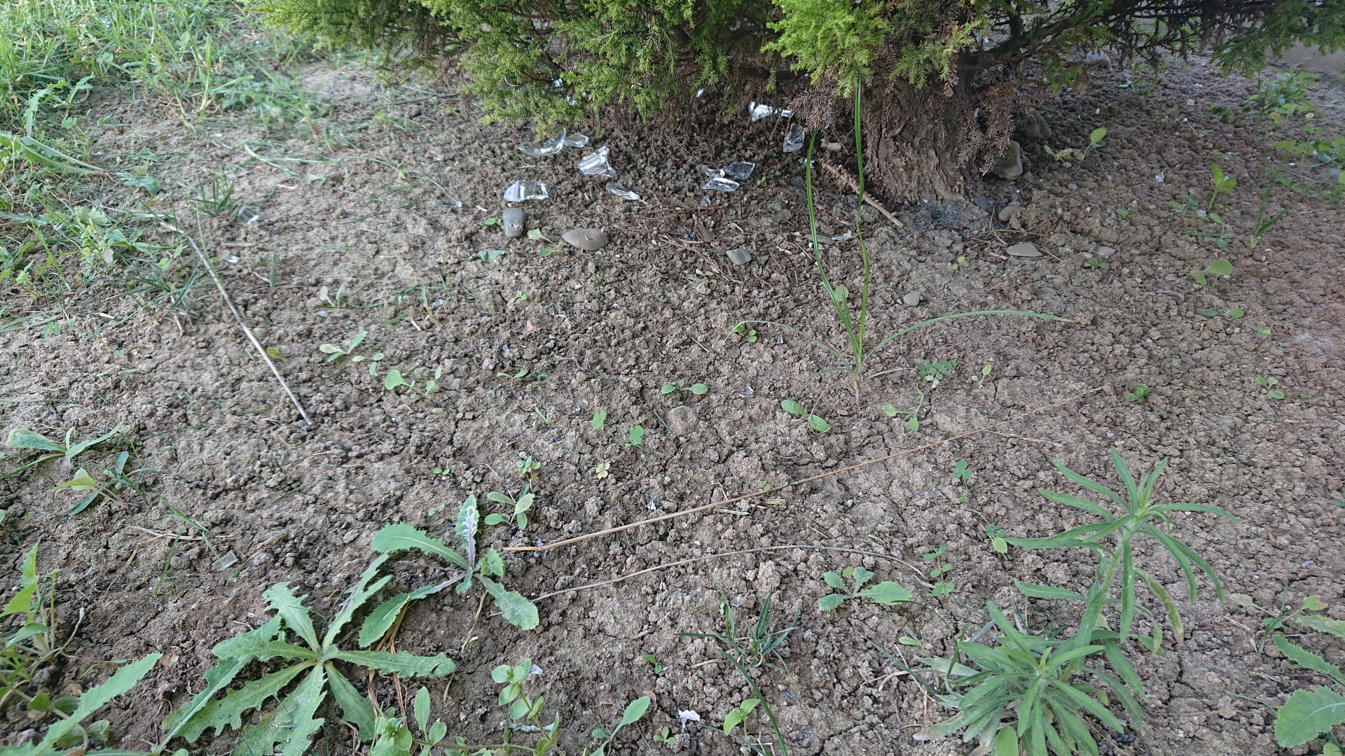 Galsscherben den gesamten Urlaub unter Dem Baum neben unserer Terrasse