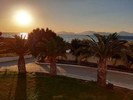 Blick vom Appartmentblock auf den Strand