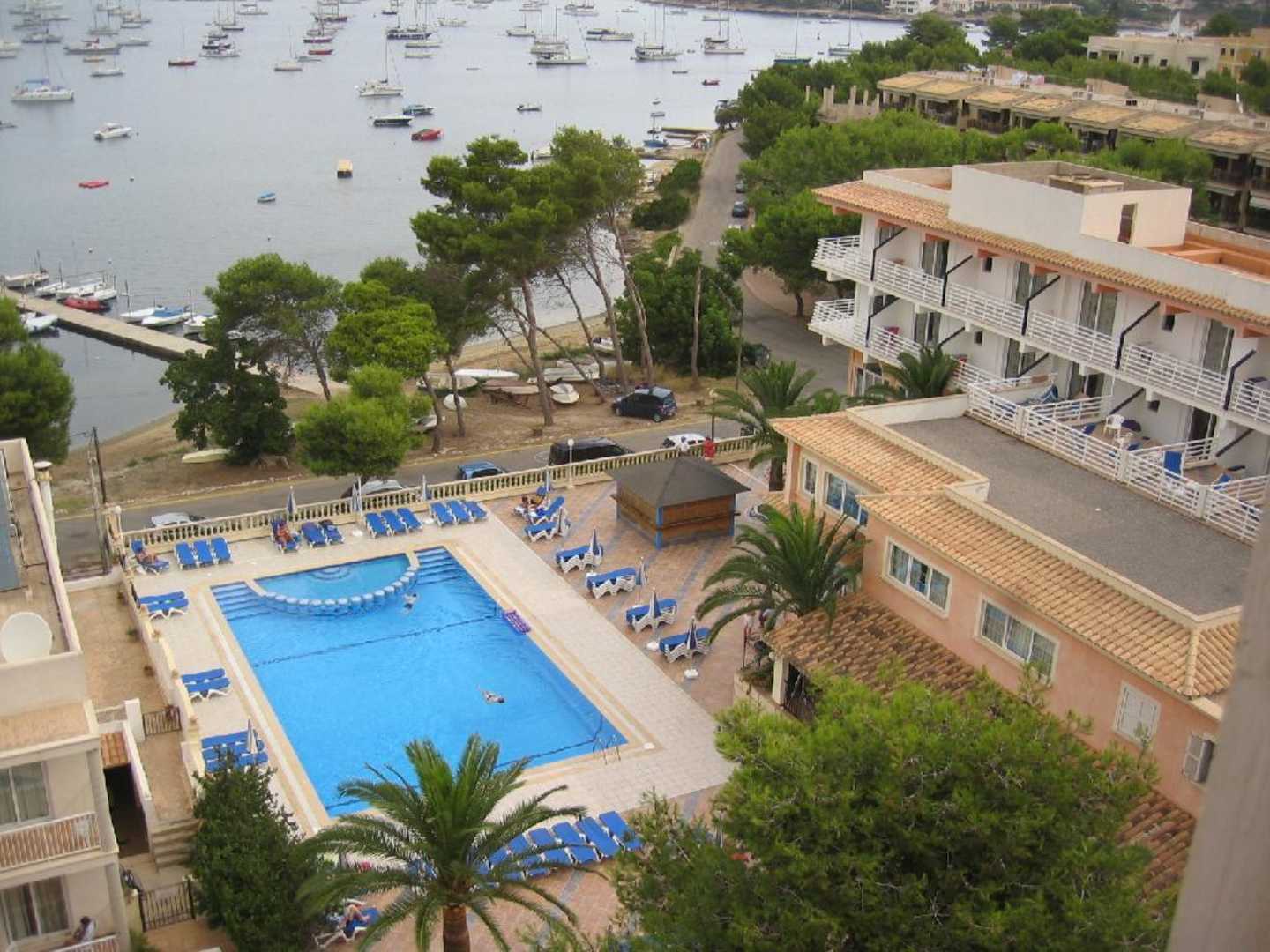 Hotel El VistamarRestaurantgebäude und kleiner Pool sowie die Zimmer 130-136 und 230-236