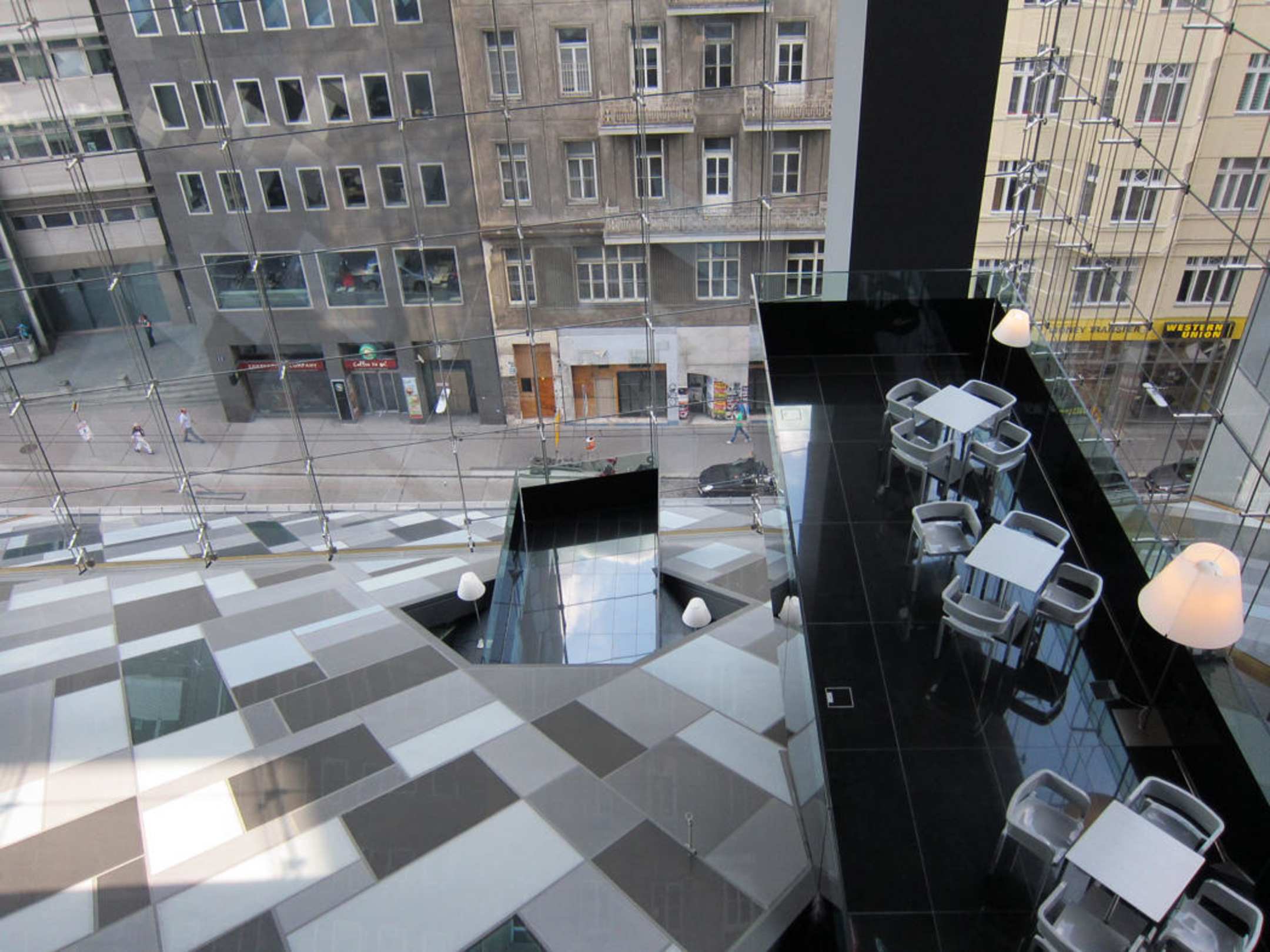 Blick vom 5. Stock in das Atrium