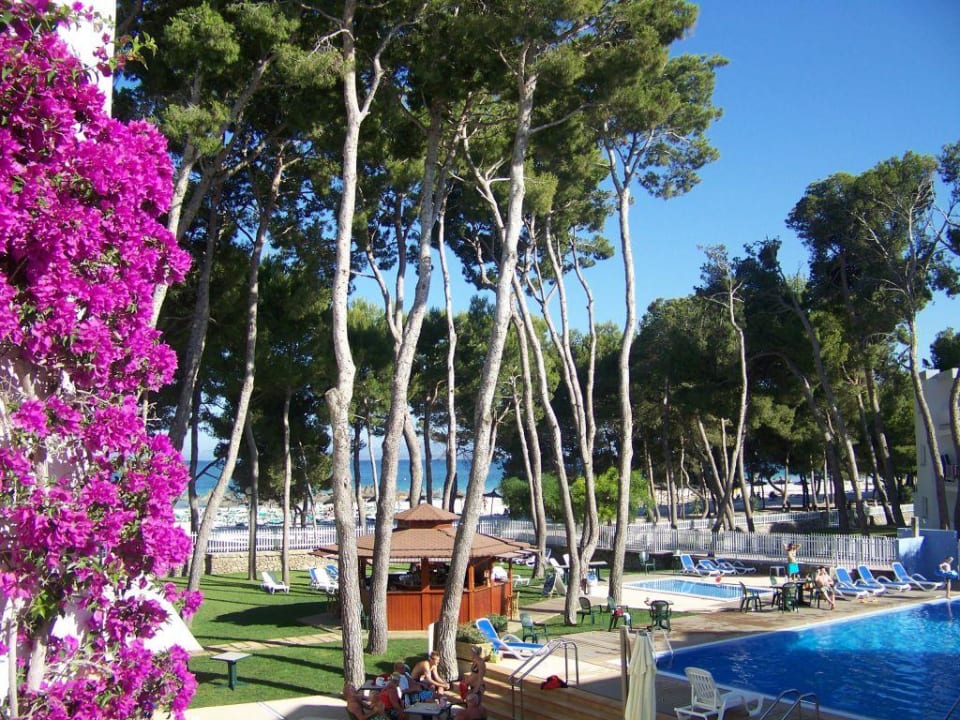Blick vom Hotel zum Pool und Strand