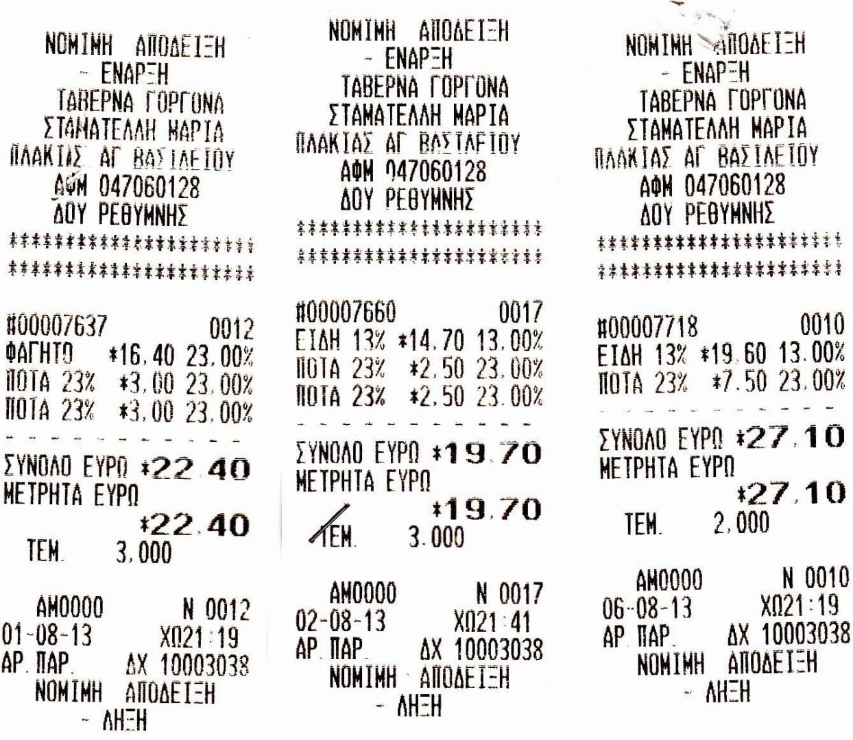 Rechnung Beispiele - Taverna Gorgona