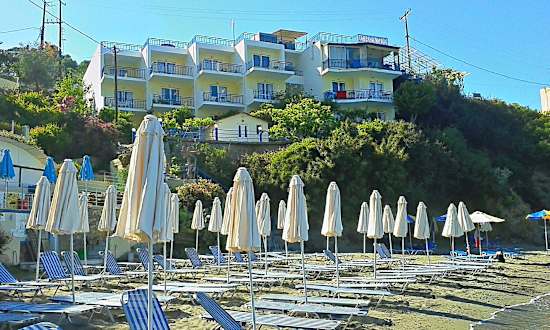 Blick aufs Hotel vom Strand aus