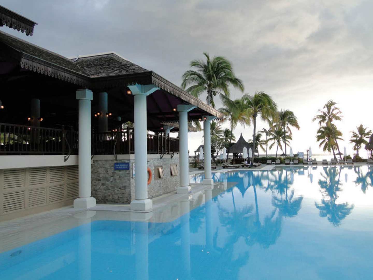 Pool mit Pink Cafe Bar (rechts im Bild)