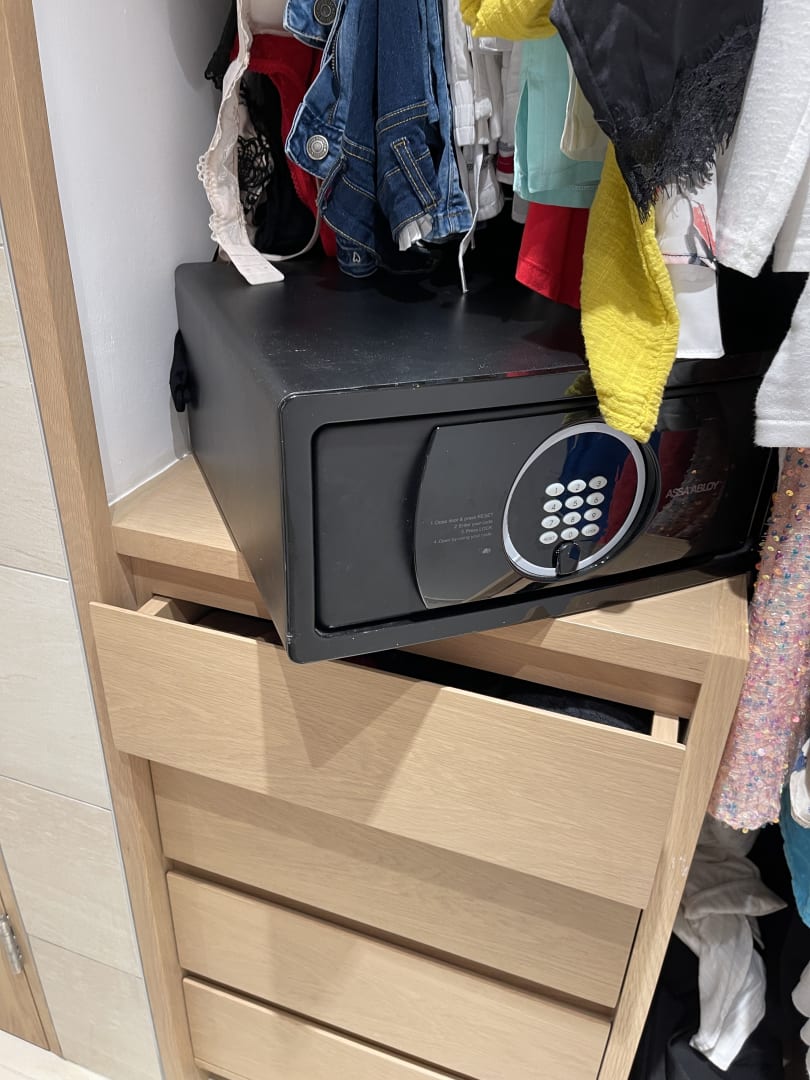 Der Safe konnte angeblich wegen fehlender Schrauben nicht am Schrank befestigt werden. Es hätte jederzeit jemand in das Zimmer kommen können um den Safe einfach mitzunehmen. Am letzten Tag fanden wir die Schrauben im Safe!!!