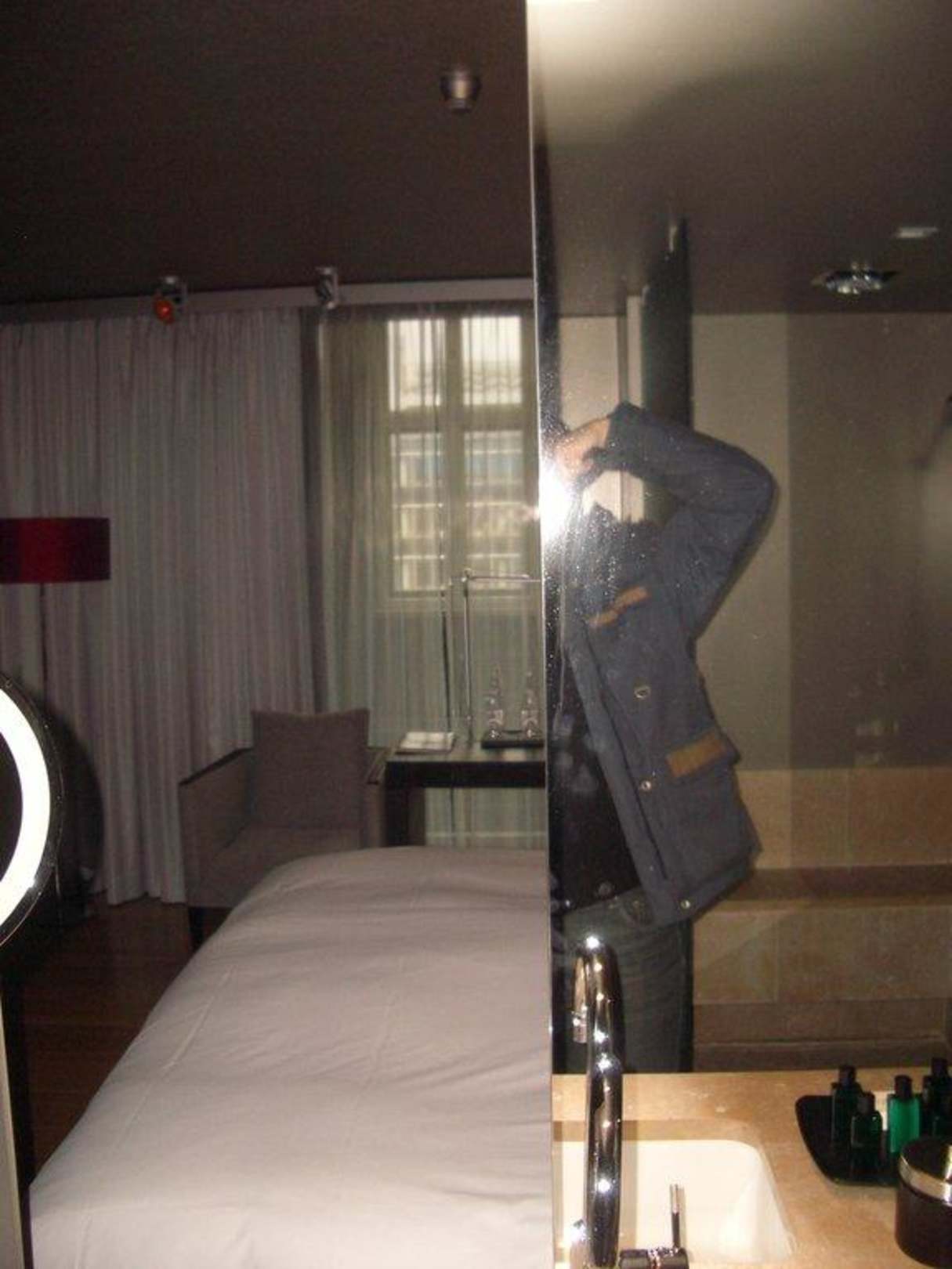 Spiegel kann beiseite geschoben werden und blick in das zimmer gewähren. nette idee.