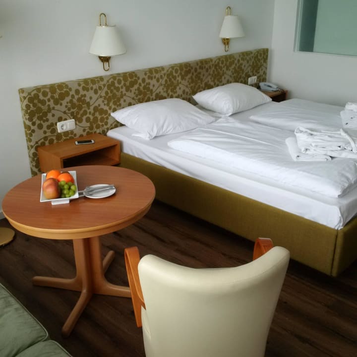 Modernes, zeitgemäßes, sauberes Zimmer mit einem bequemen Bett