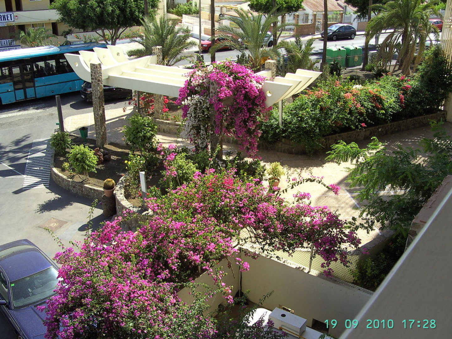Üppige Bougi-Hecke, linkssteht unser MietAuto