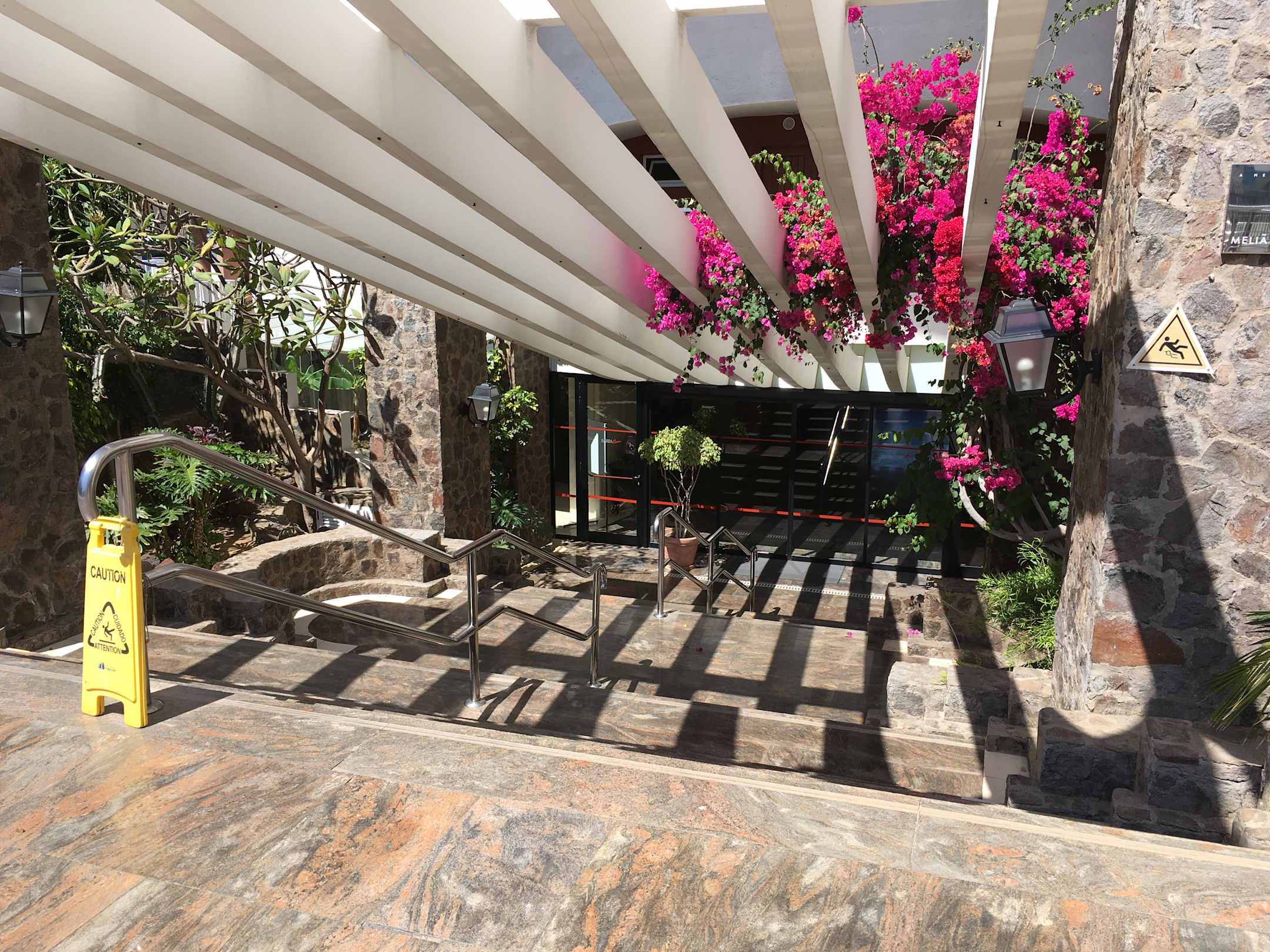 Treppe vom Strassenniveau zur Lobby und Rezeption.