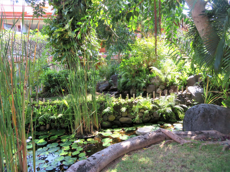 GartenanlageSchön angelegter Garten mit Teichen und Skulpturen.