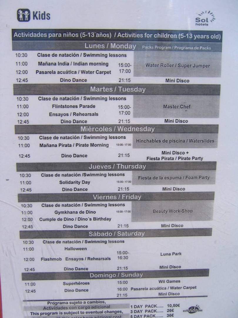 Sport- und Freizeitangebot einer Woche/Kinder 3-12