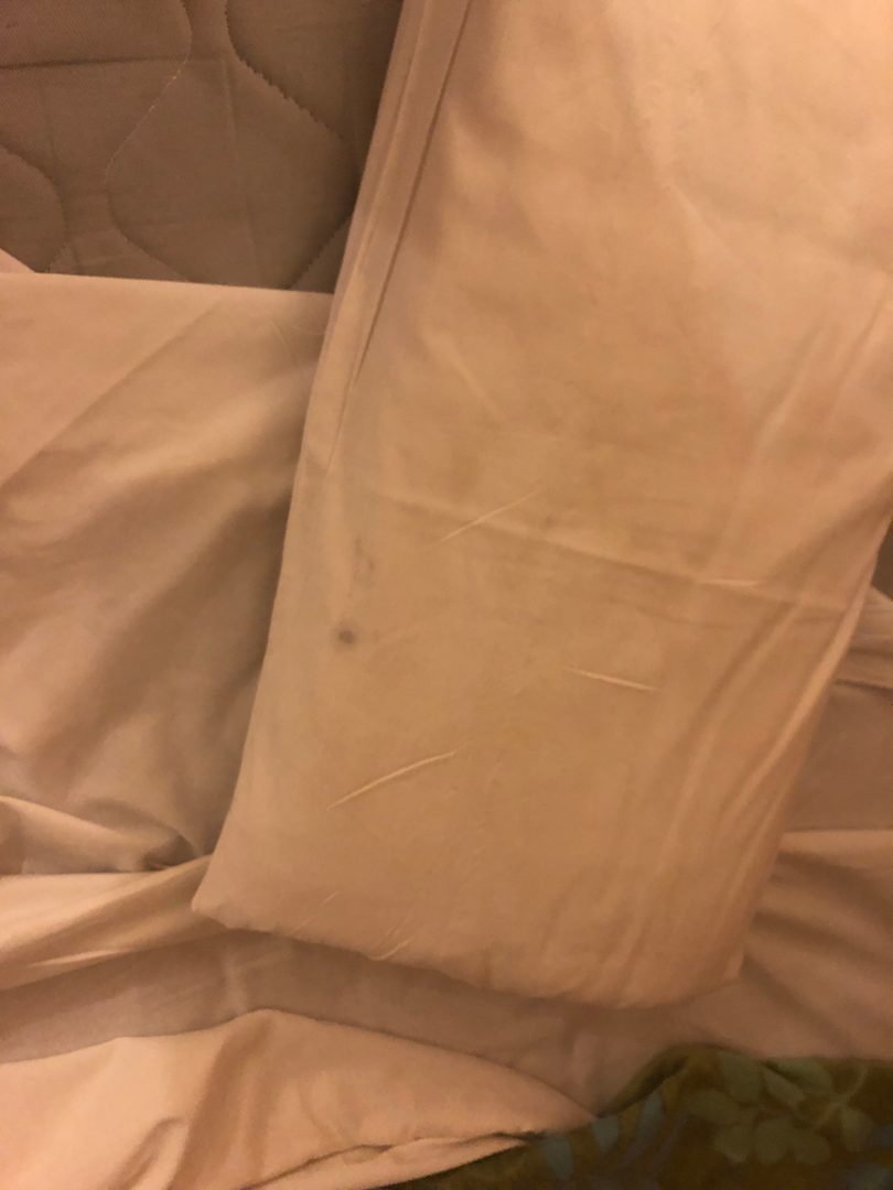 Polster am Bett mit Flecken