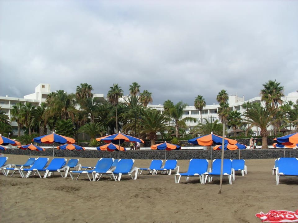 Strand mit Hotel im Hintergrund des Bildes