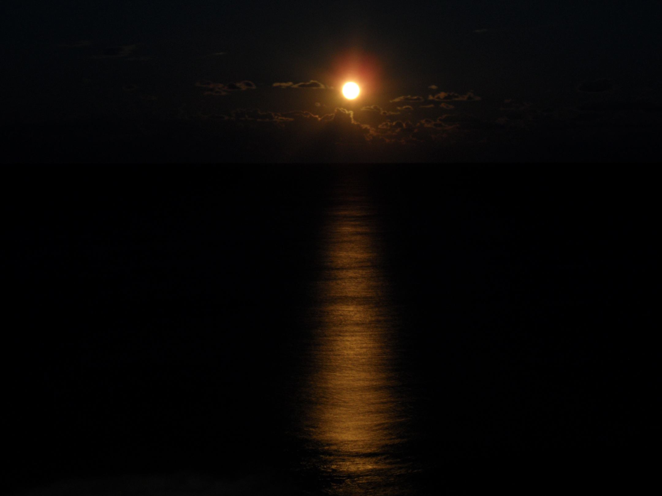 Blick von unserem Meerblickzimmer bei Nacht.