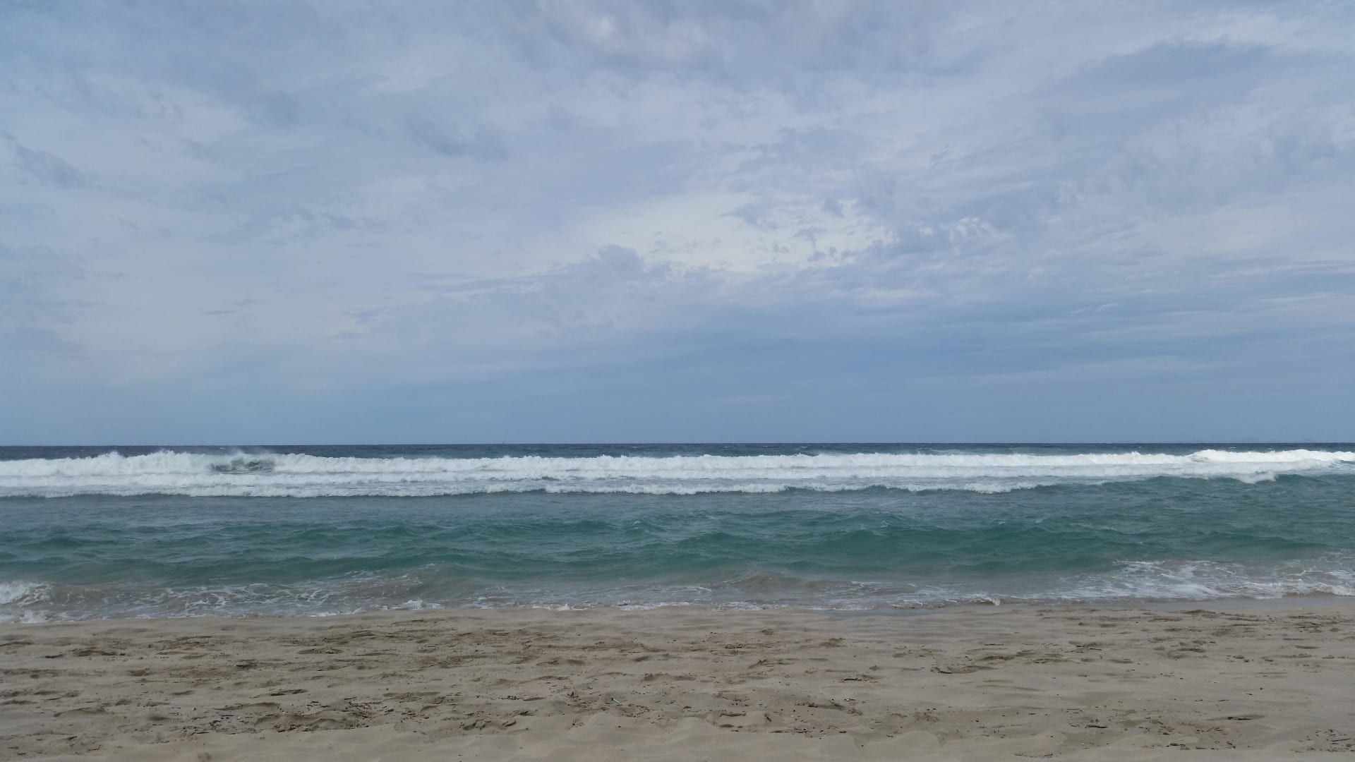 Strand. Leider schlechtes Wetter und hohe Wellen