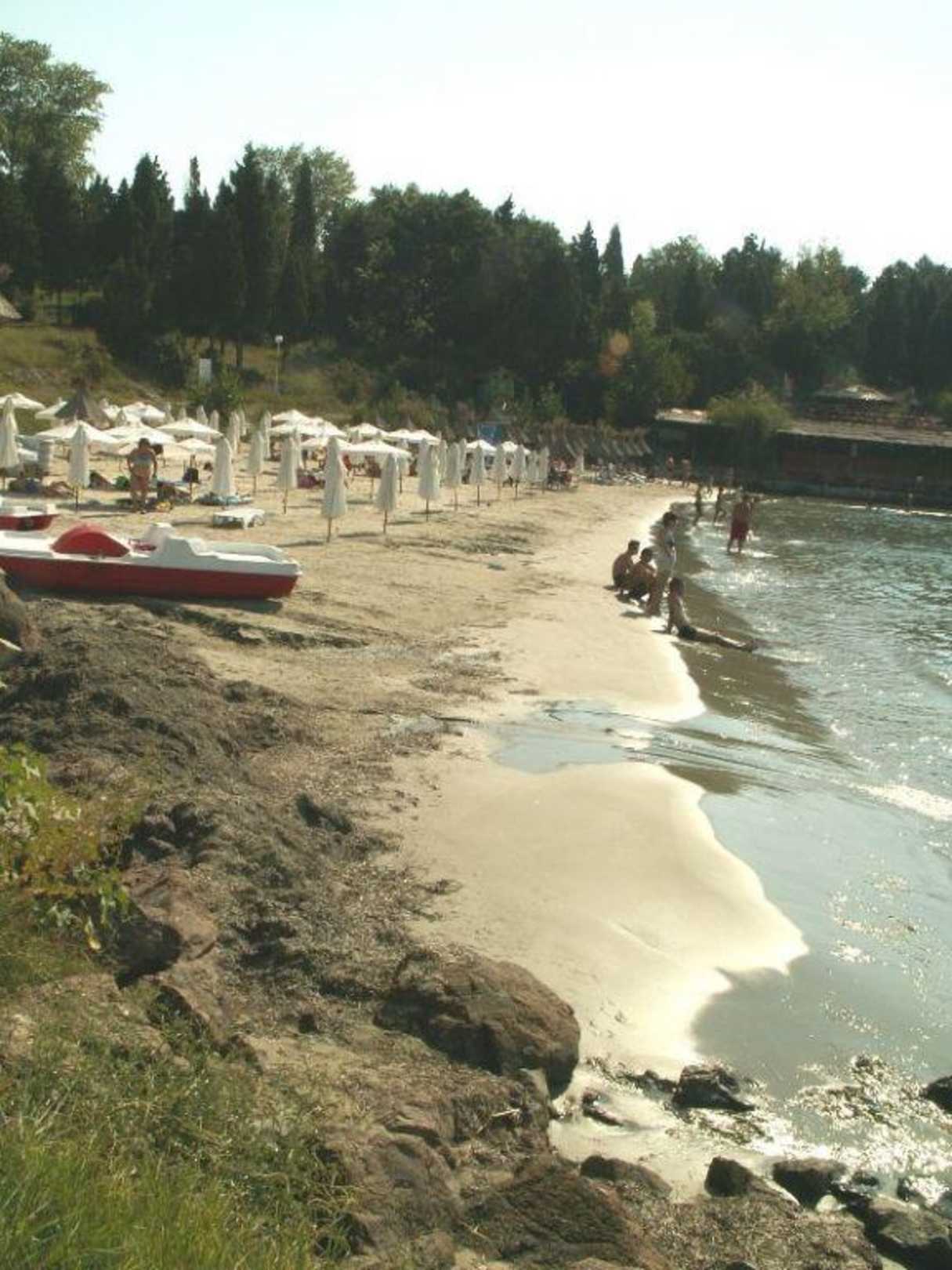 Wenn man die Holztreppen hinter dem Bay hintunterläuft kommt man zu diesem Strandabschnitt (linke Seite) und wie gewohnt - Liegen und Schirme jeweils 5 Lewa (~2,50 Euro)