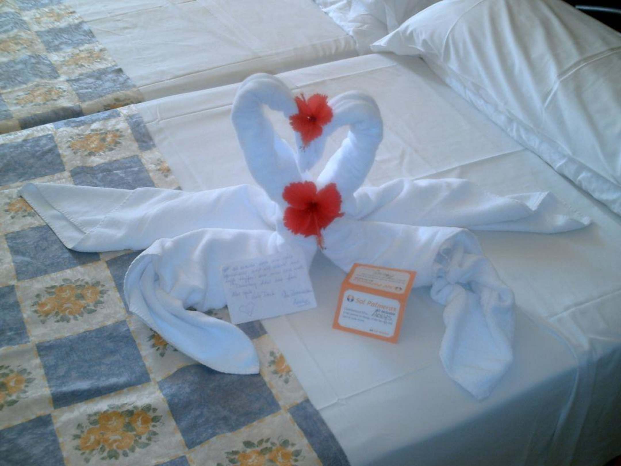 Mit 2 Handtüchern zu Schwänen geformt wird man begrüßt.