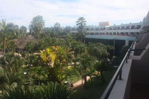 Blick vom Balkon in den tropischen Garten