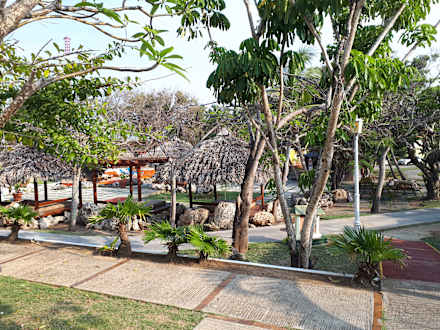 Whirlpool, Bar und Liegefläche in der Bungalowanlage
