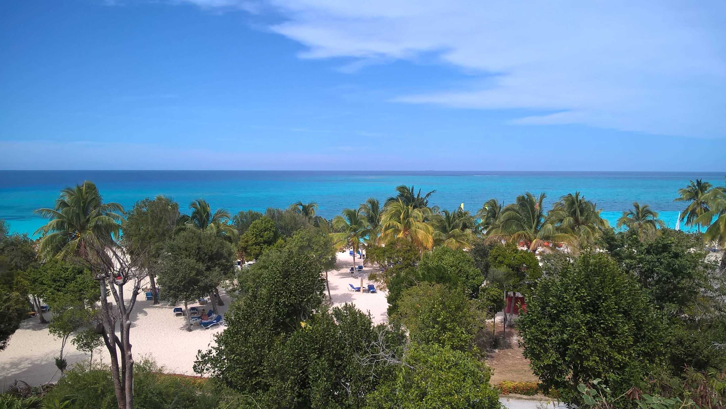 Widok z tarasu hotelowego na plażę