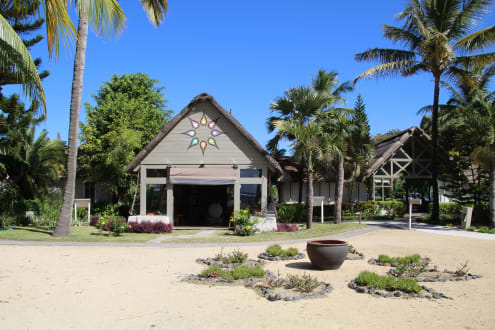 Rezeptionsbereich vom Garten aus betrachtet