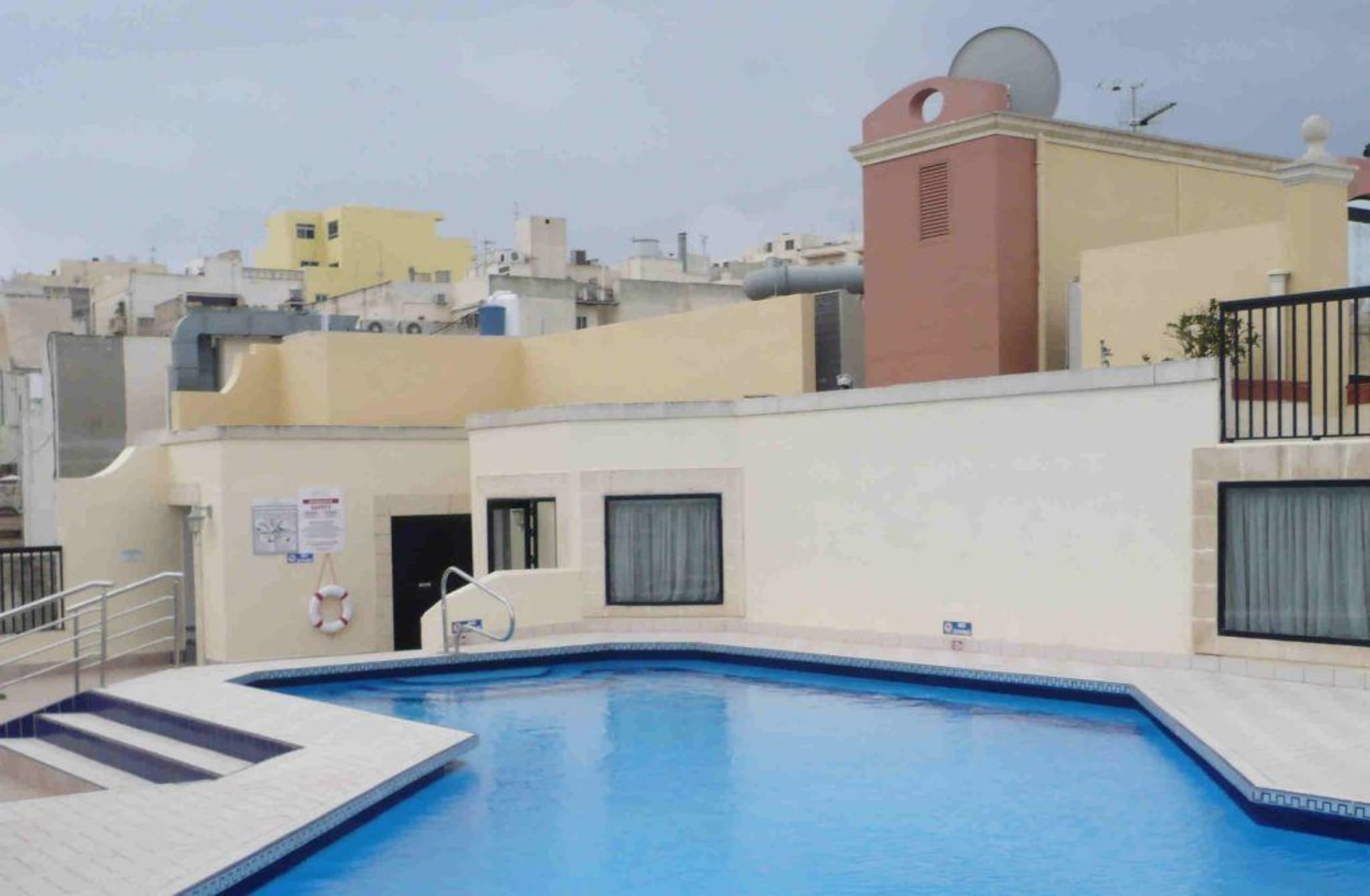 Der Hotelpool des Solana mit Blick auf die Dachlandschaften Melliehas.
