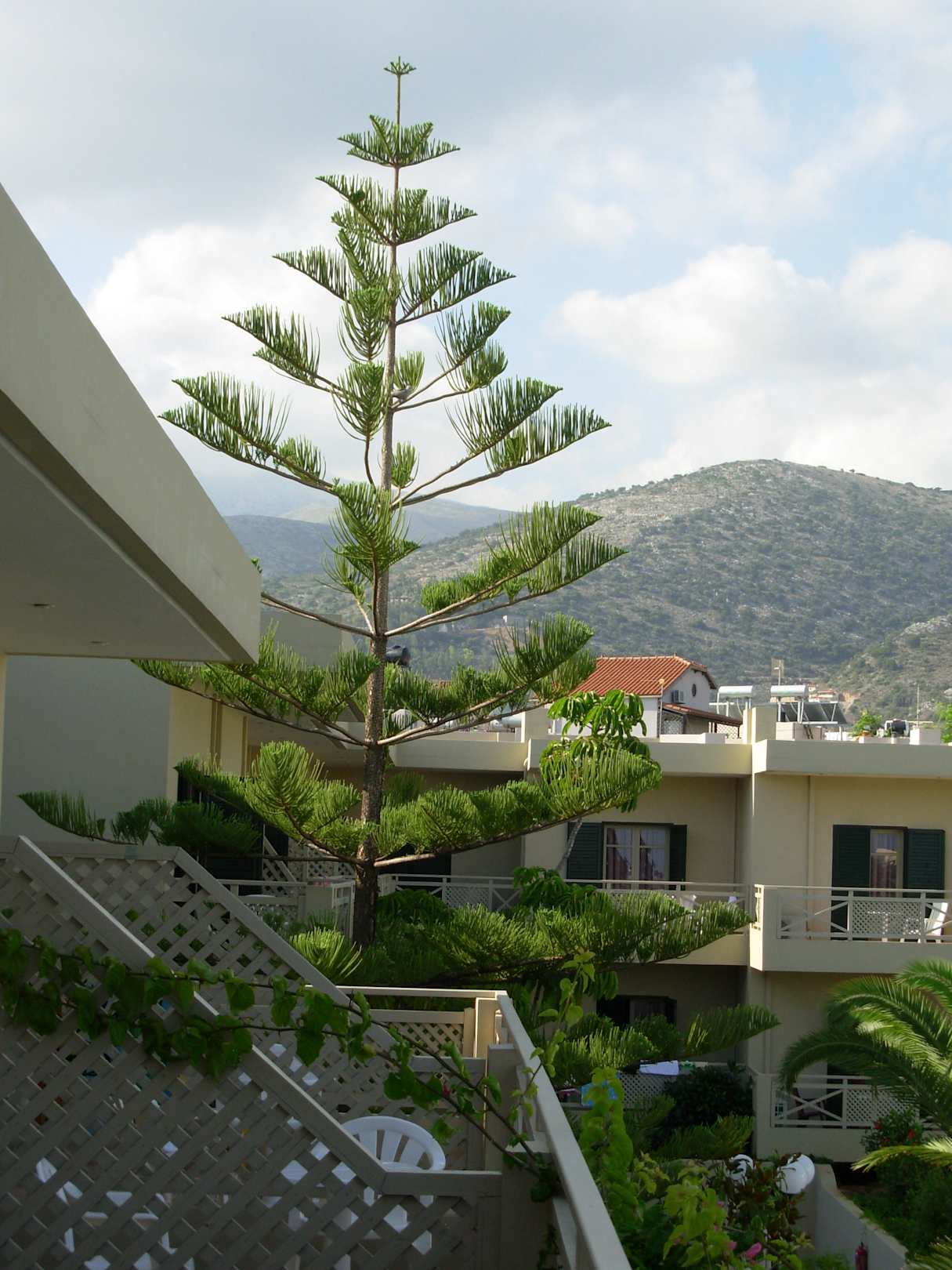 Widok z tarasu pokojuzdjęcie wykonane rano z tarasu pokoju wzdłuż budynku hotelu z zaznaczeniem otoczenia pobliskich gór