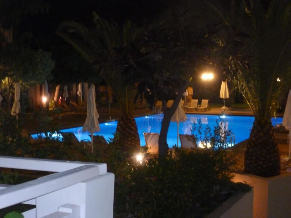 Garden and pool in the night