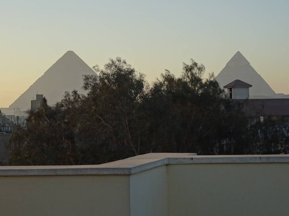 Bombastische Aussicht auf die Pyramiden von der Dachterrasse