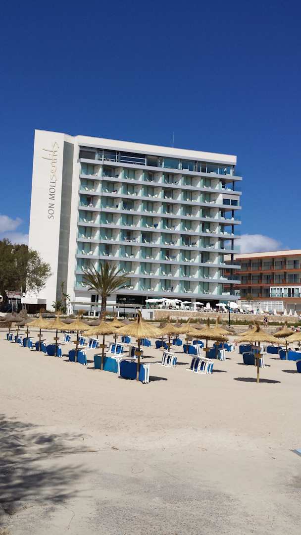 Das ist das Hotel vom Strand aus