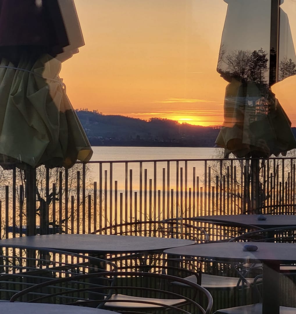 Ausblick auf den Sonnenuntergang während dem Abendessen