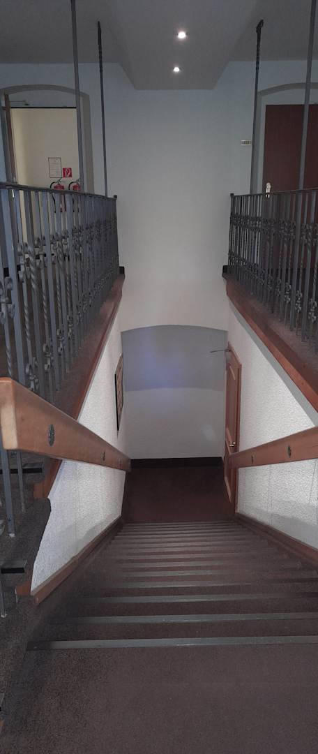 Treppe nach unten zum Restaurant/ Rezeption/ Ausgang