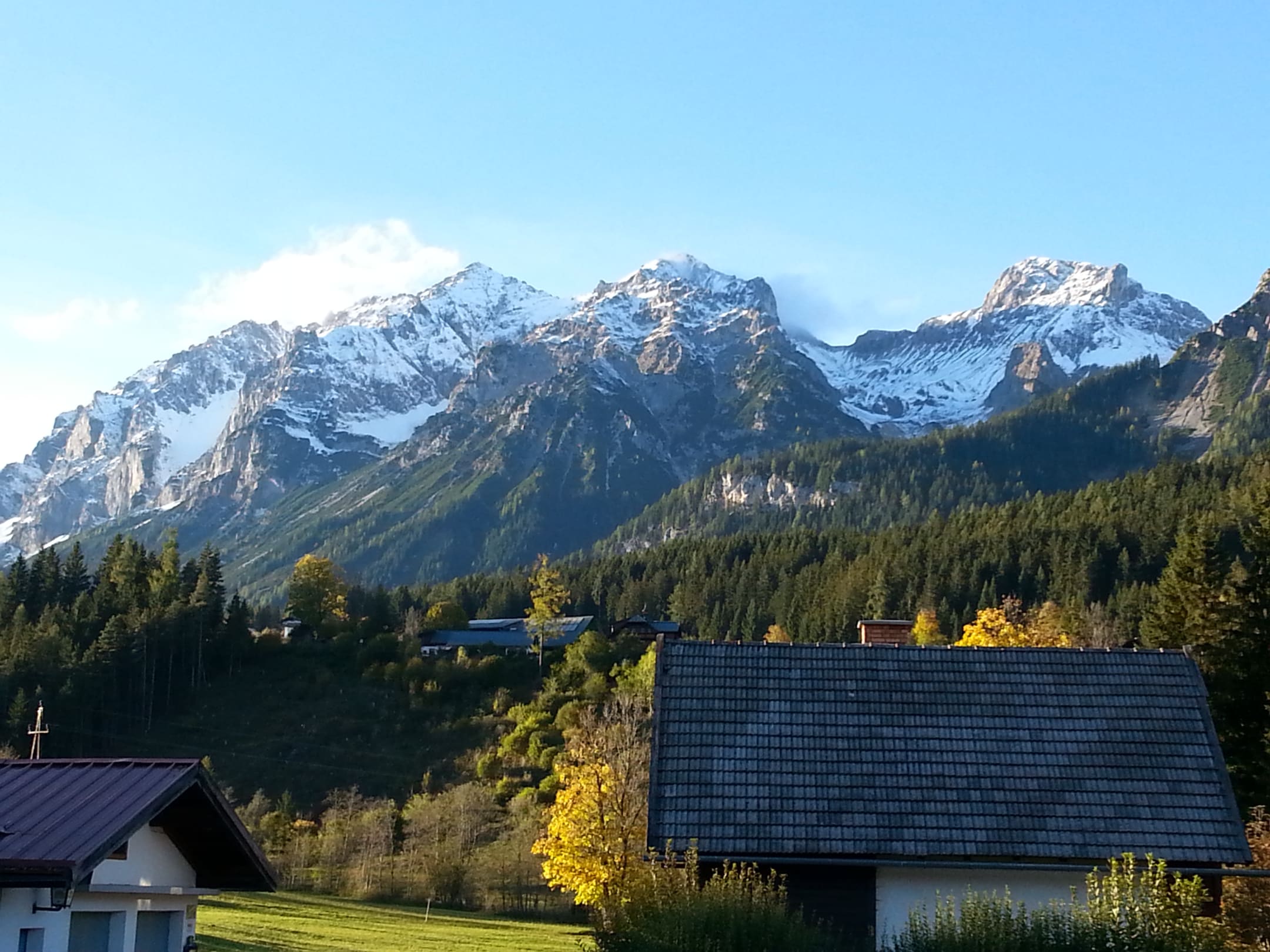Blick vom Hoteleingang auf das Dachsteinmassiv