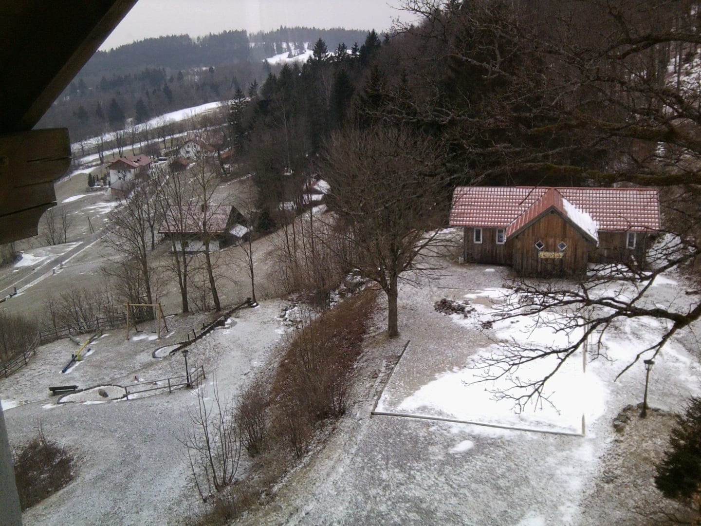 Blick vom Balkon auf Kinderclubhaus
