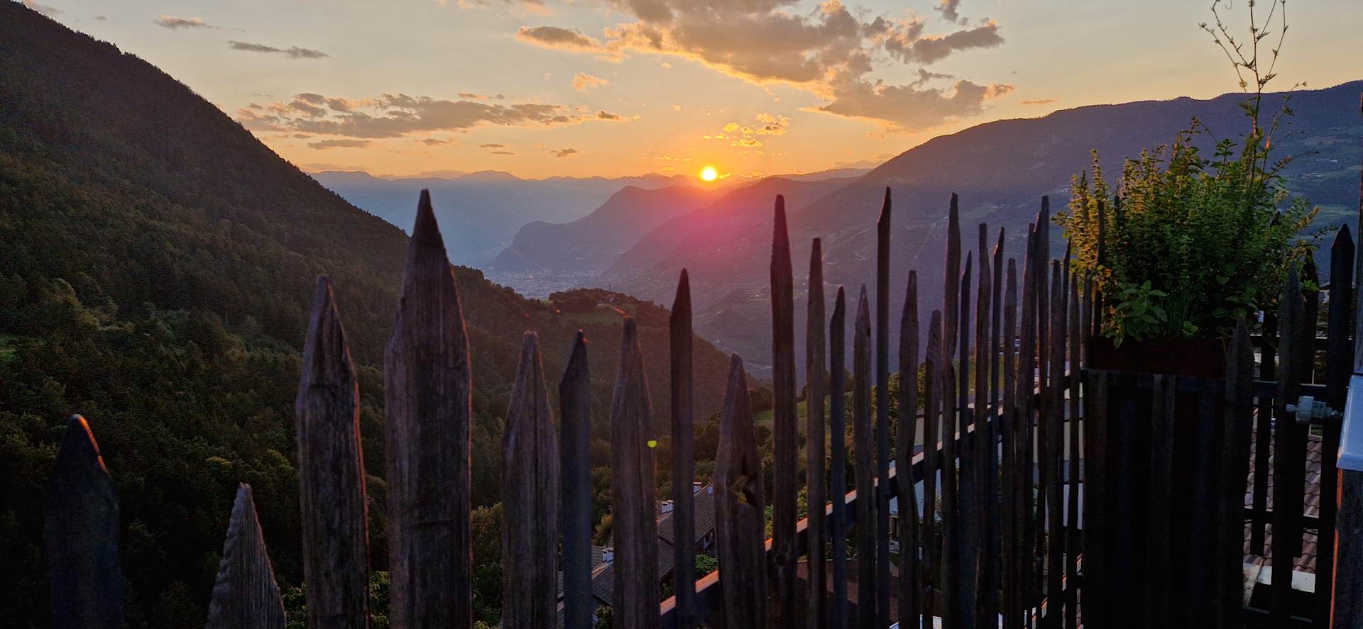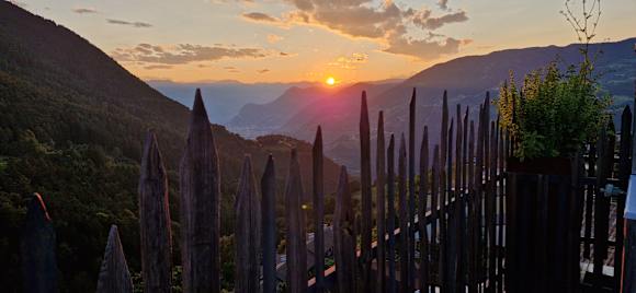 AusblickSonnenuntergang auf der Dachterrasse mit Blick auf Bozen