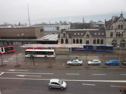 Blick vom Wohnzimmer auf den Bahnhof