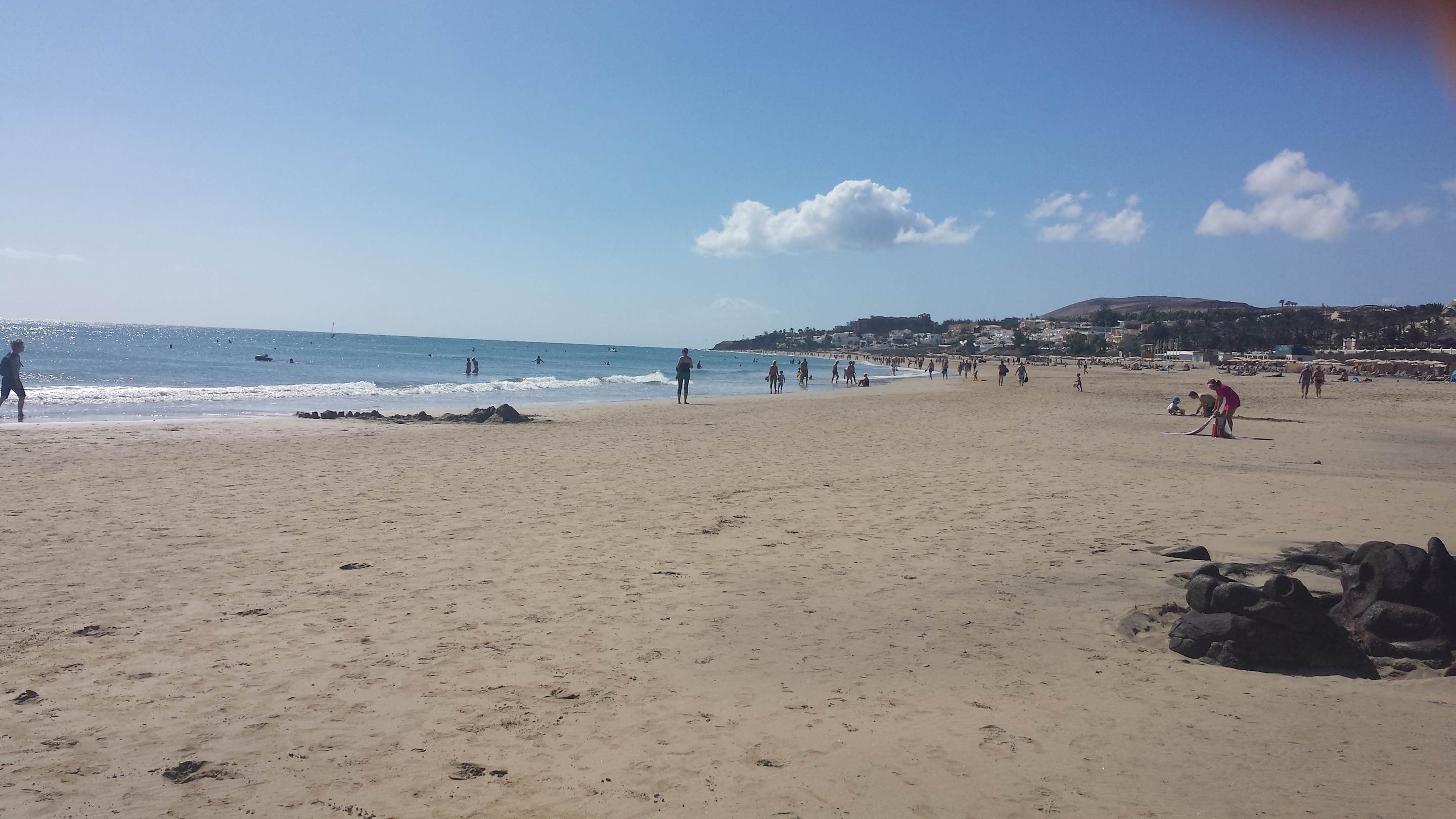 der lange Strand hinter den Felsen
