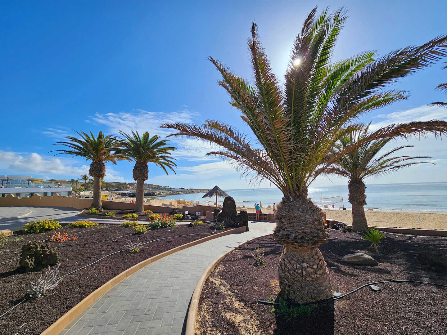 Ein schön angelegter Weg führt direkt zum Sandstrand (Steine an der Wasserlinie)