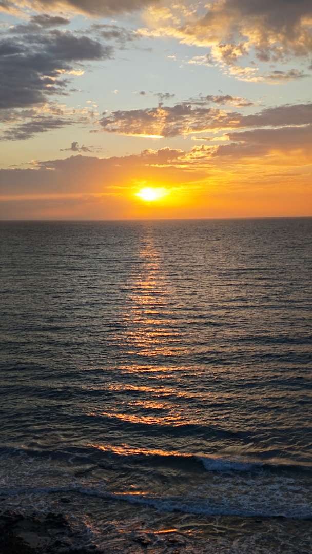 Blick vom Balkon aufs Meer bei Sonnenaufgang