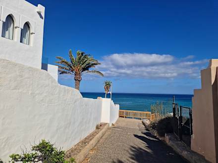 Hinter der hotelanlage. Über eine Treppe kommt man zum Strand